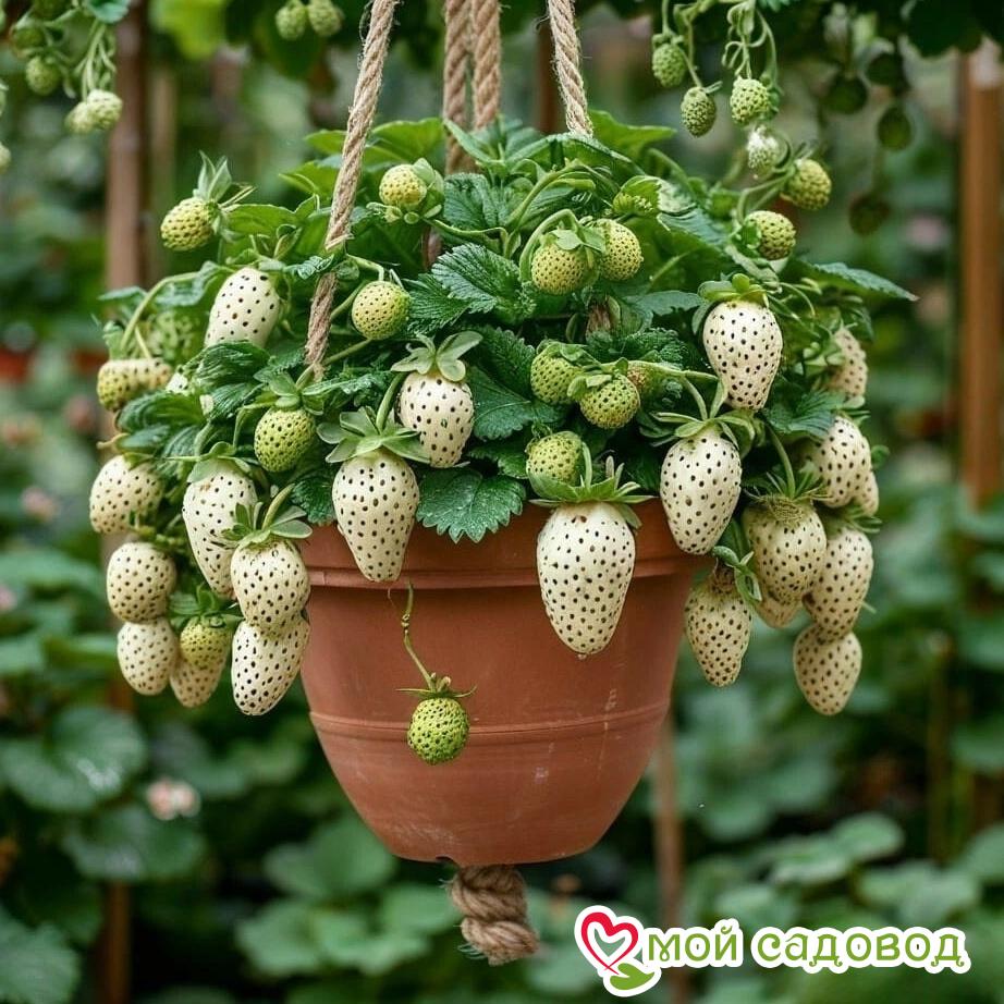 Белая ампельная клубника «Супер Свит»: экзотика и сладость в подвесном кашпо от «Моего Садовода»!